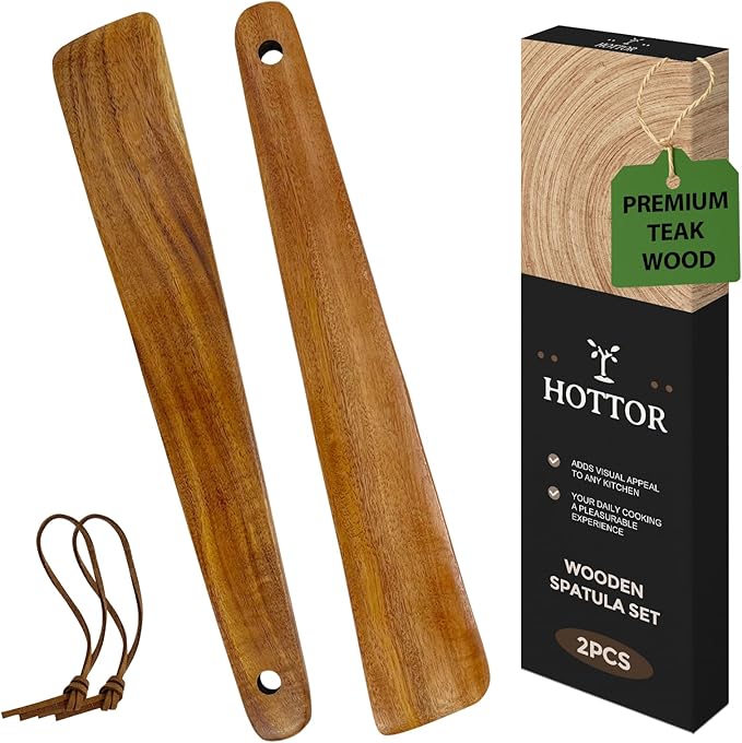 12. Teak Wood Spatula for Cooking,12.2 Inch Flat Wooden Spatula for