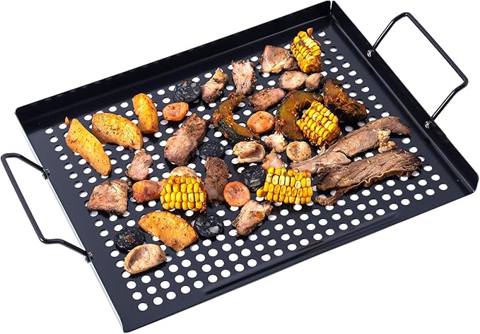 - Perforated design enhances natural flavors while preventing food from falling through grills