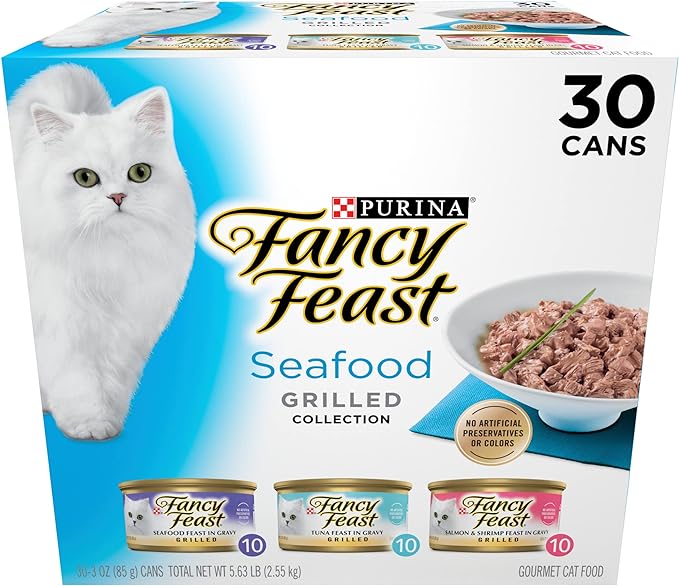 Overall, Purina Fancy Feast Grilled Seafood Feast delivers excellent value and taste, especially for multi-cat households. Its flavorful, protein-rich recipe stands out among wet cat foods, providing cats with a satisfying and diverse meal that supports their well-being.