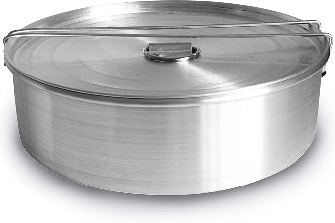 2 inches and holding 75 quarts, this flan pan features a convenient lid that shortens cooking time and maintains moisture for a velvety texture. Crafted from durable aluminum, it withstands regular use, while its round shape suits a variety of custards and baked dishes beyond flan.